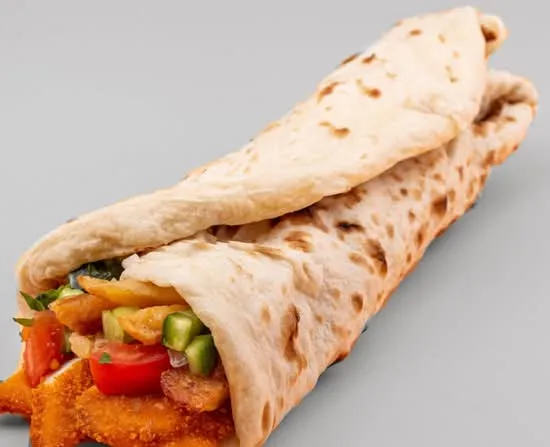 Freshly Baked!! Crispy Schnitzel Wrapped In Soft Laffa Bread, Offering A Delightful Blend Of Flavors In Every Bite.