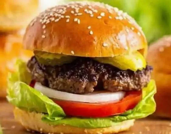 Perfectly Grilled Patty. Our In House Spicy Sauce, Lettuce, Tomato, Red Onions, Pickles. & French Fries.